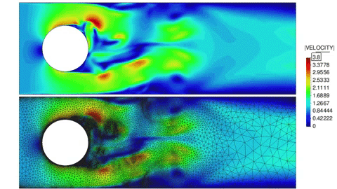 Adaptative remeshing of 2D fluid channel with sphere with Kratos Multiphysics solver¶