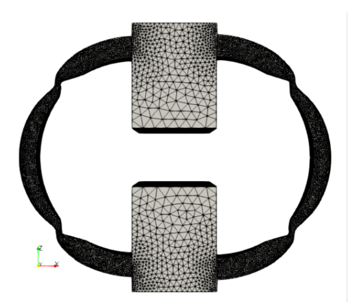 Cut through external volume of the final mesh obtained by the discretization of the 0 isovalue of the distance function computed over the adapted mesh¶