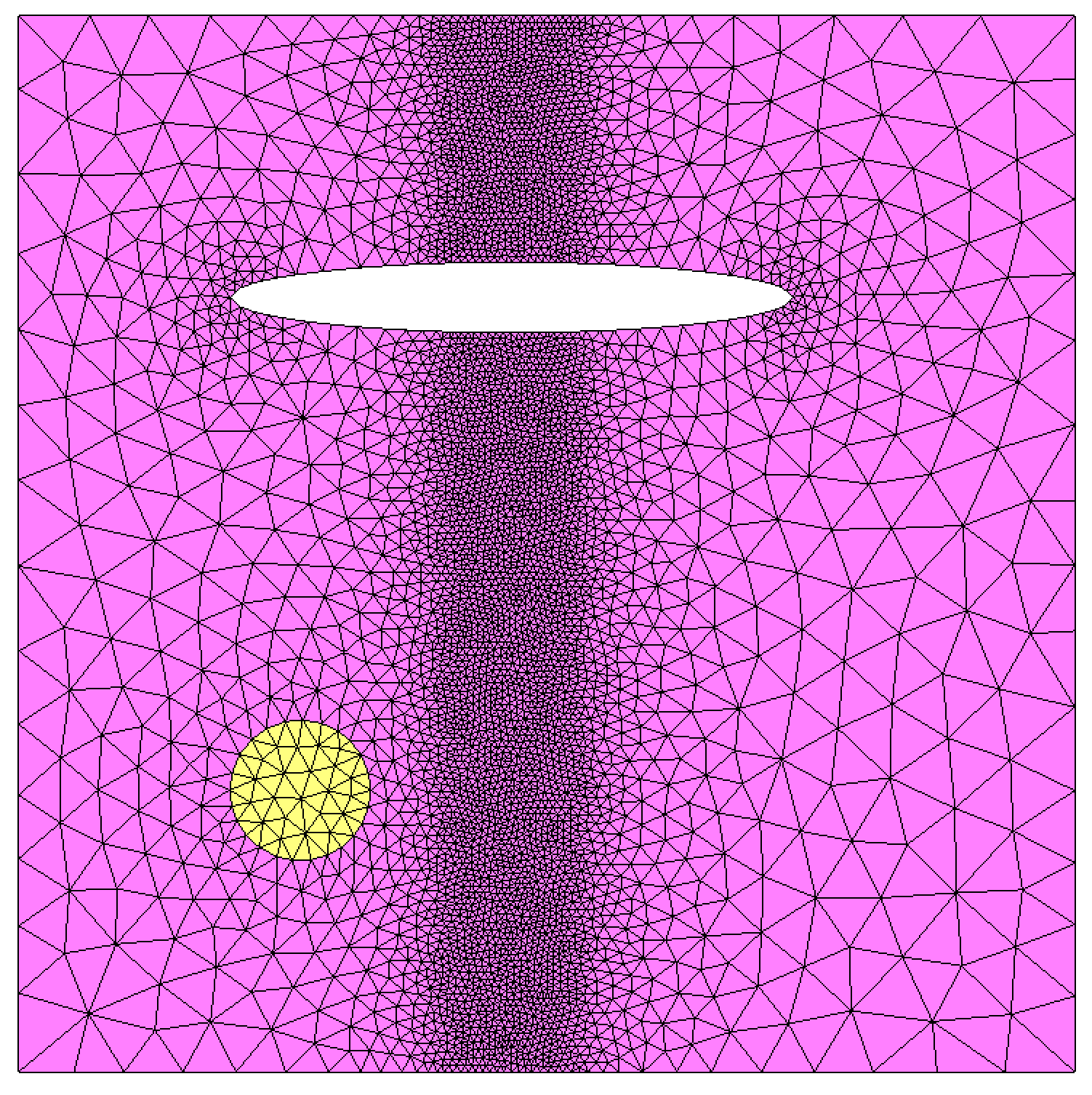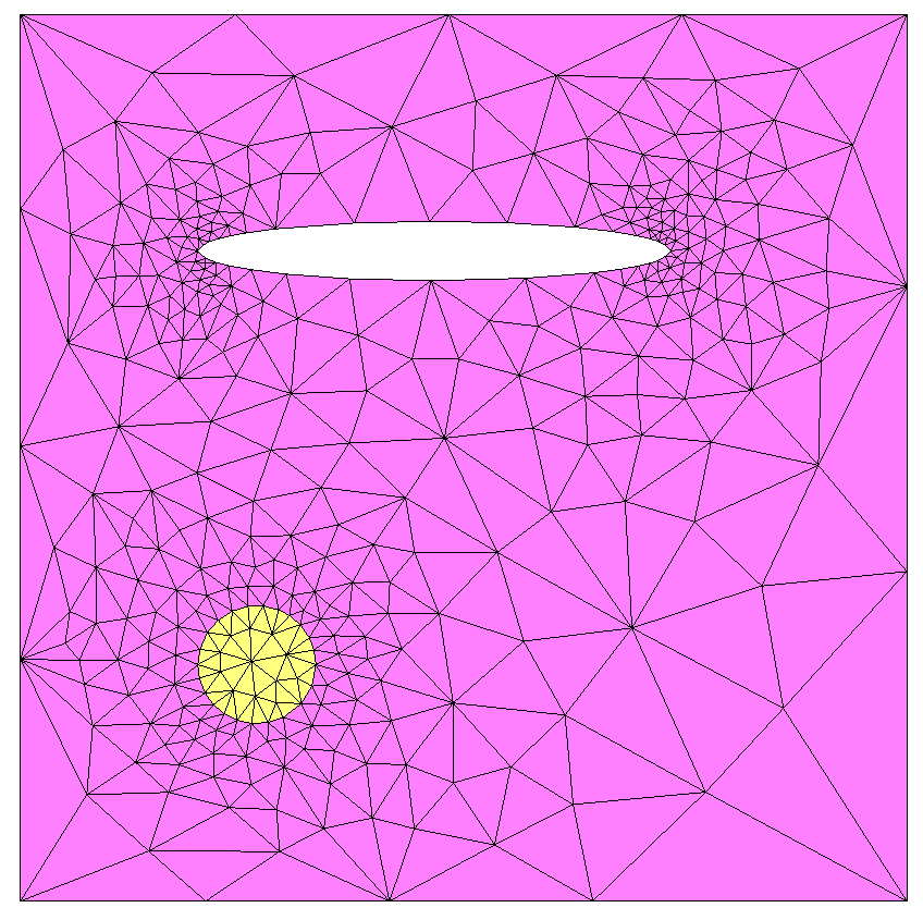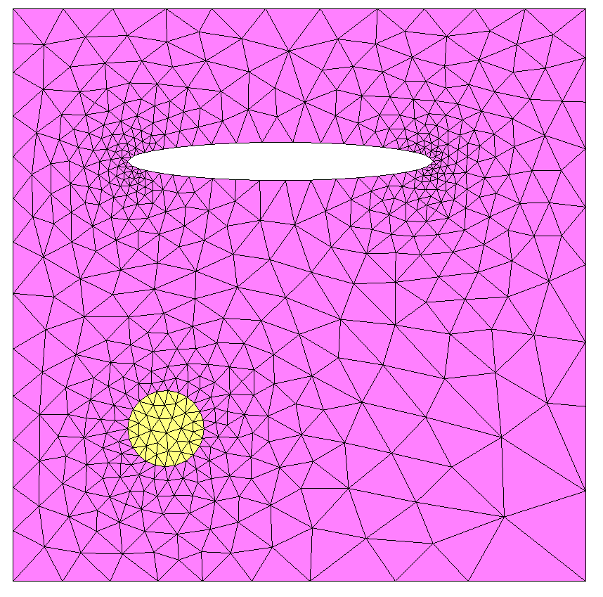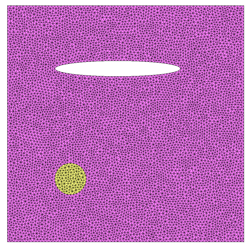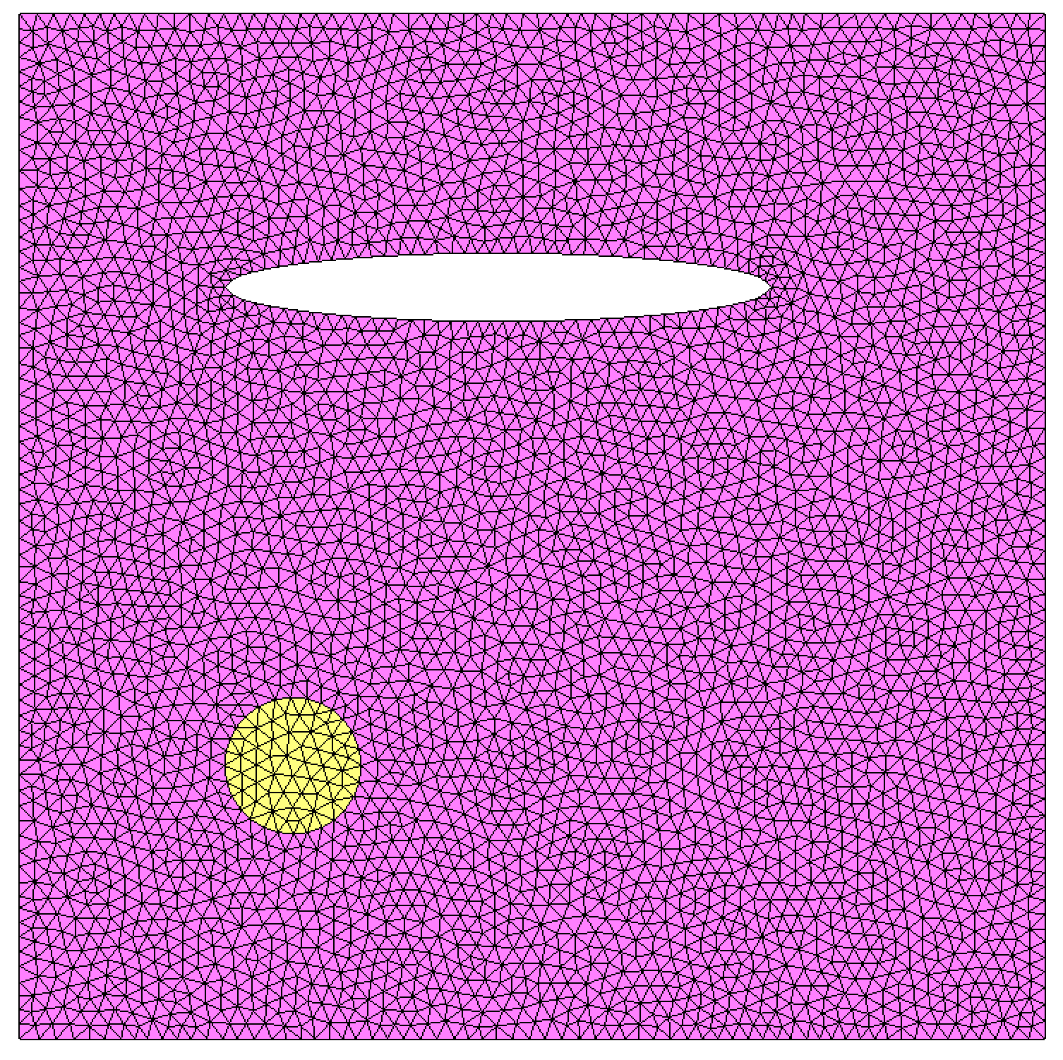 Initial mesh: a square with a hole and two different domains (different references)¶
