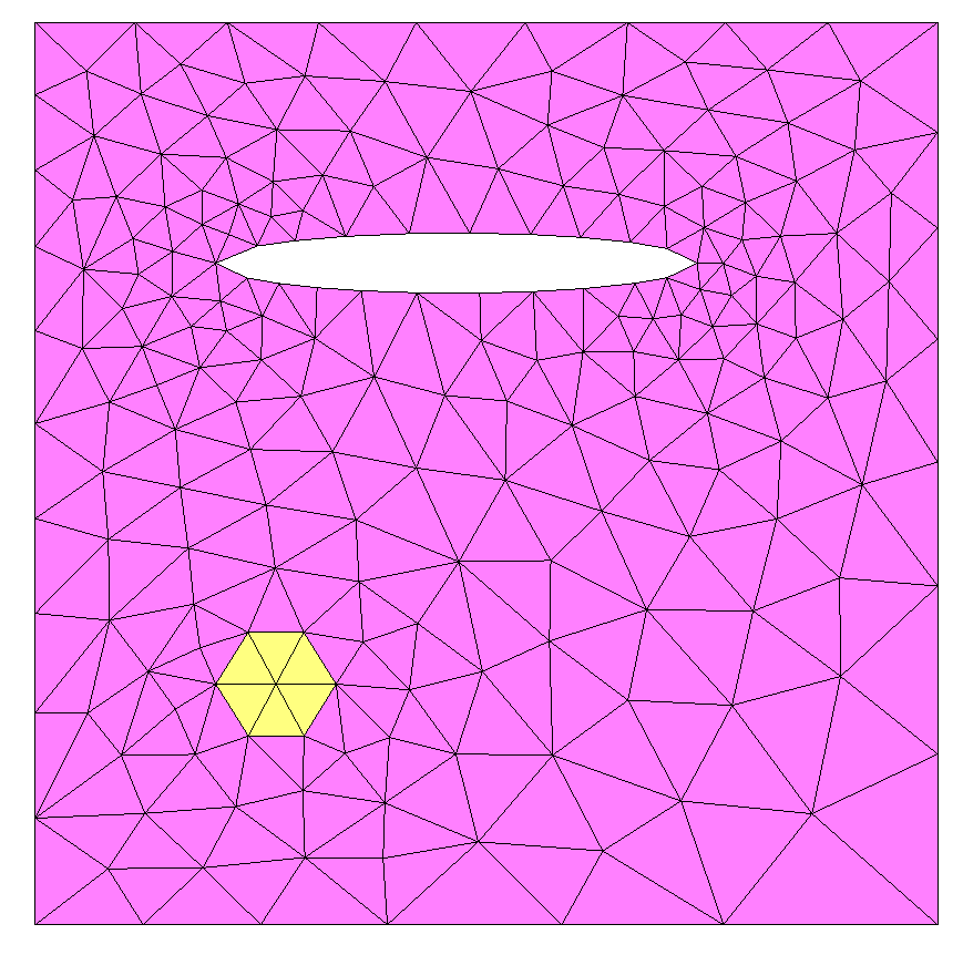 In this example, the hole boundary and the interface between the two domains are degraded because the Hausdorff distance that has been set is large compared to the object sizes.