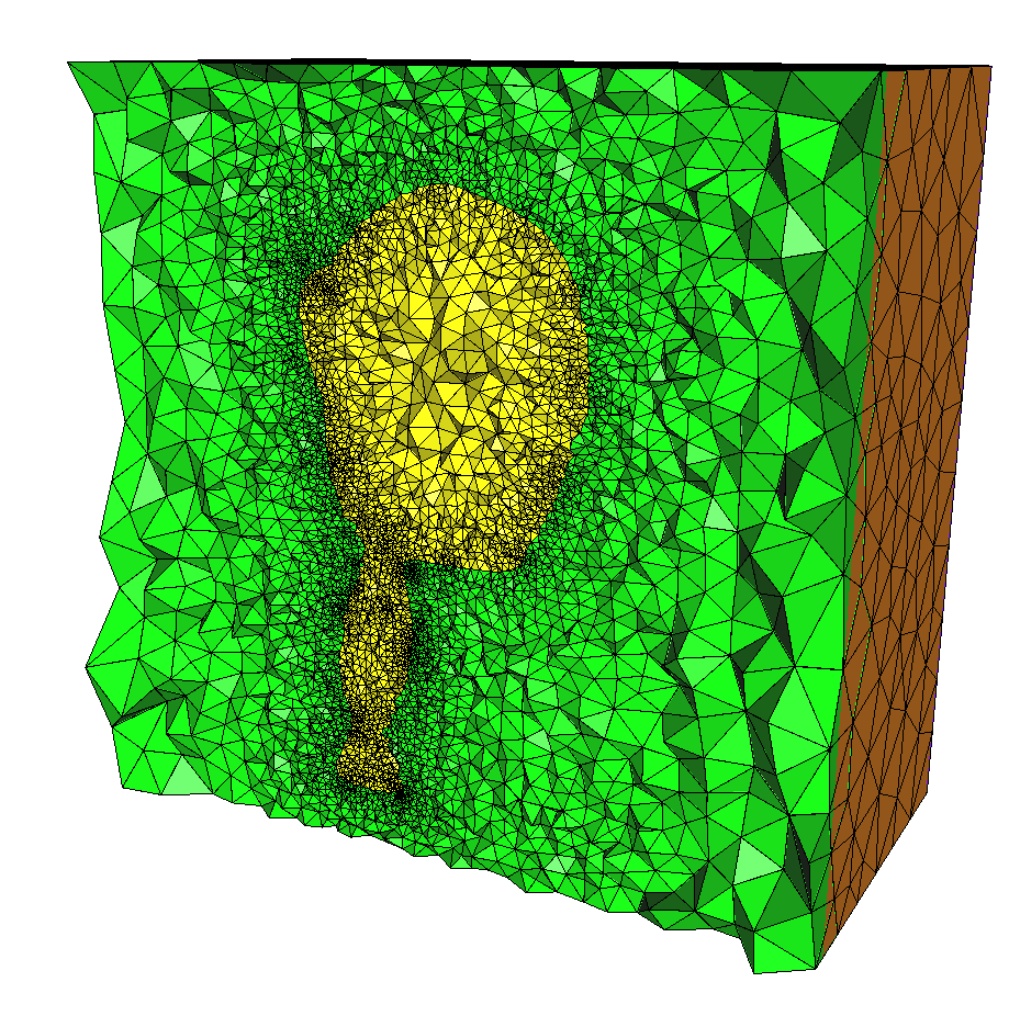 The result of this example is displayed below. With this option, mesh boundaries are split according to the input level-set function. Internal tetrahedra are not split. Note that all boundary references must be mapped in the reference file.