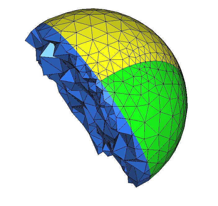 The output mesh consists in two domains separated by a surface that is an optimized mesh of the initial implicit surface, as illustrated below.