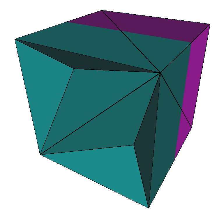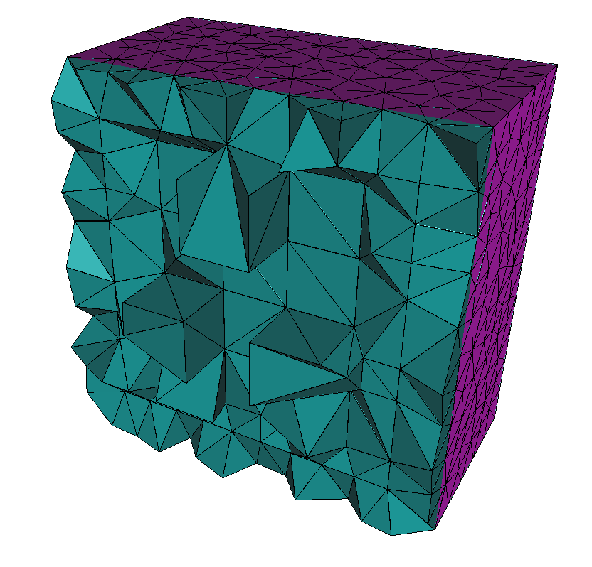 produces the output mesh displayed below. As the approximation of the cube boundaries is exact, the remesher can coarsen the mesh.