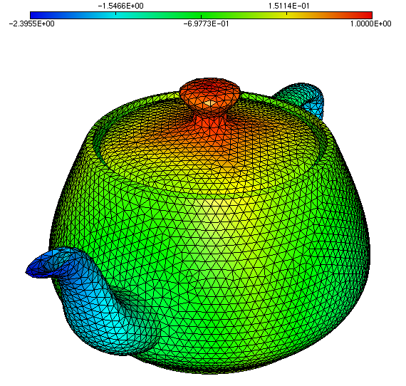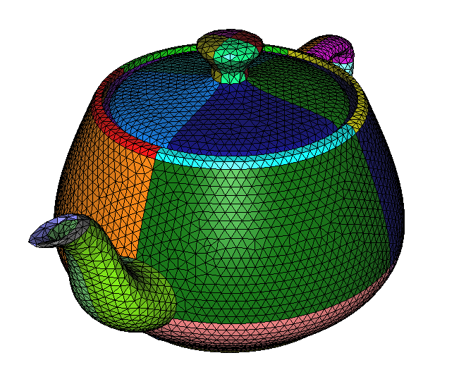 By default, mmgs resets references of the input mesh. In the previous example, the teapot has multiple references.