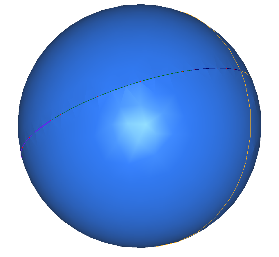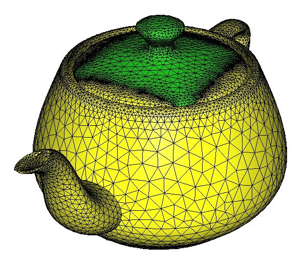 Output teapot mesh. The yellow line represents the isovalue 0 of the distance function, the green domain its positive part and the yellow one its negative part.¶